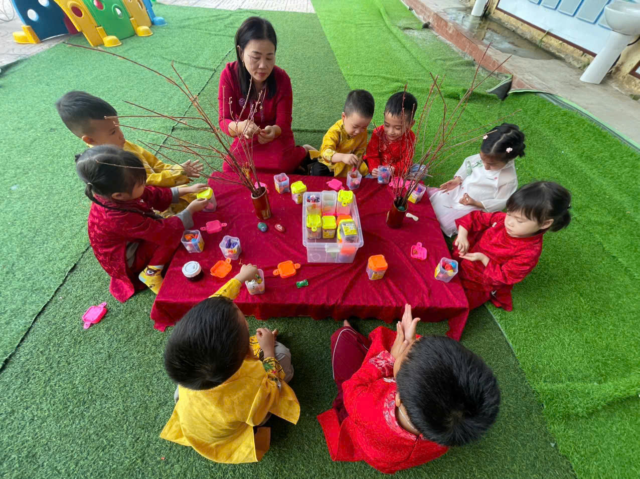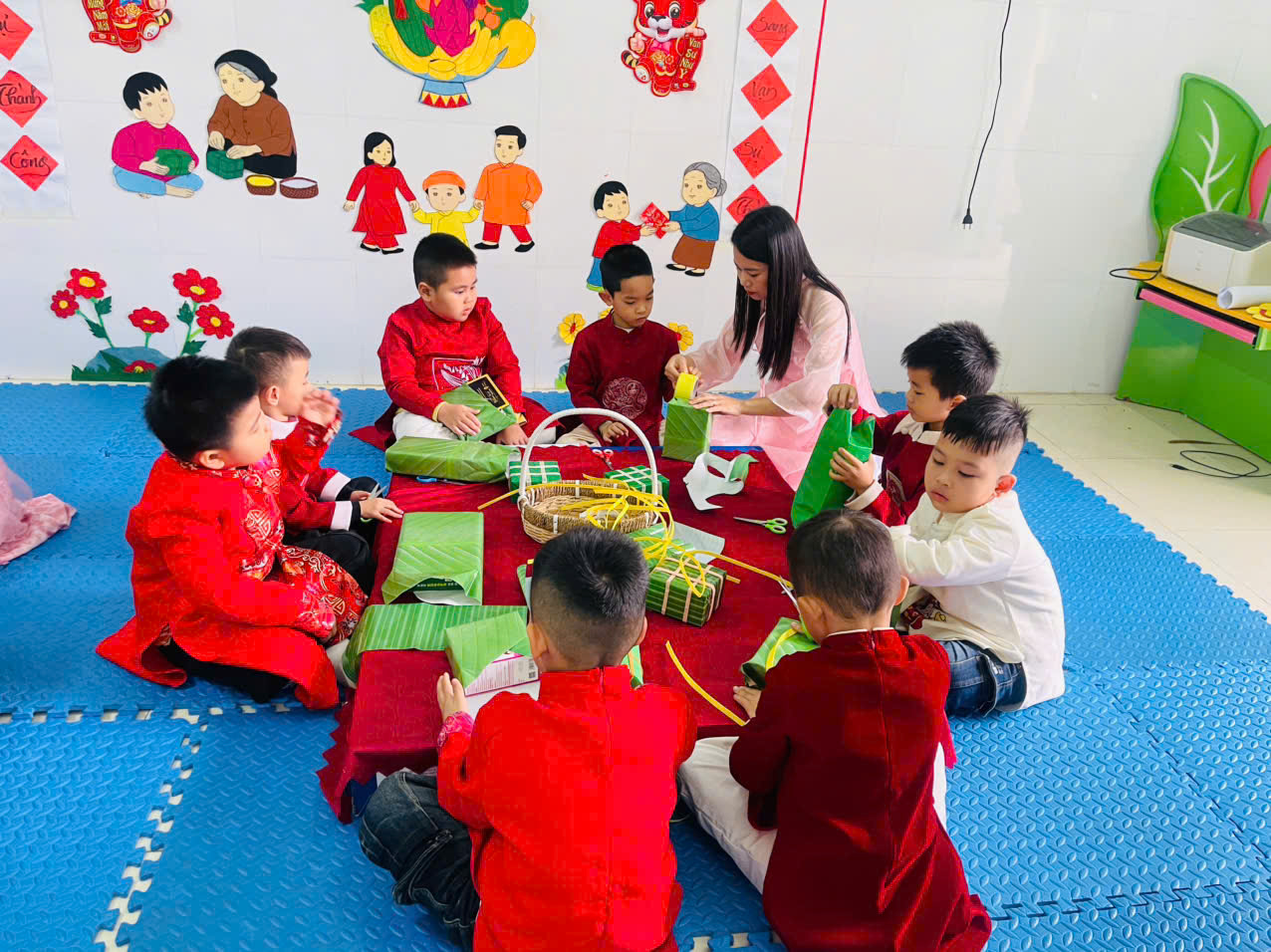 Buổi hoạt động trải nghiệm với chủ đề “Bé vui đón Tết – Mừng xuân sang” mang ý nghĩa giáo dục sâu sắc đối với trẻ mầm non. Thông qua các hoạt động như gói bánh chưng, trang trí cành đào, cành mai, làm...